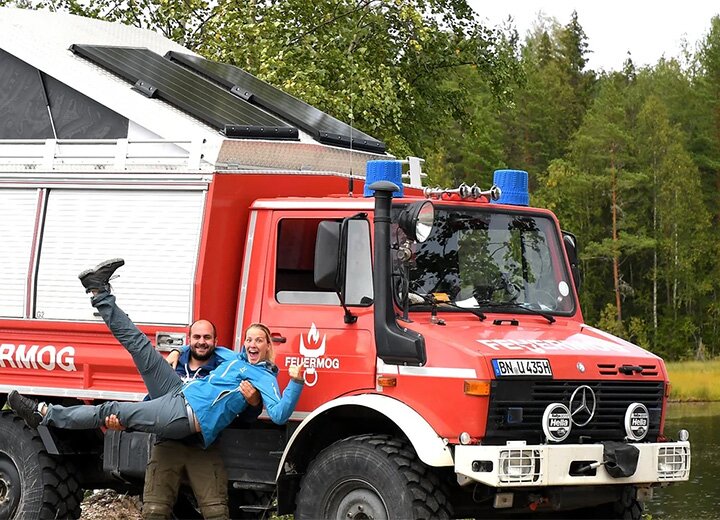 When our Eberspächer partners Alexandra and David are on the road, they’re on fire! It took them many months to convert the Unimog armoured fire truck that they purchased in 2020 – or ‘Feuermog’ - into a touring and expedition vehicle, before they could set off on their first adventure to Sweden. It was a long journey from the very first technical inspection and driver cab alterations to the final camper conversion based on the original armoured vehicle. The "Feuermog" is now ready for anything - equipped with an Eberspächer parking heater fitted with EasyStart Web. Perfect for the northernmost rally in the world, the Baltic Sea Circle Rally – in which @feuermog won first place in the winter of 2023. Want to find out more? Follow @feuermog on Instagram or visit the Feuermog web page.